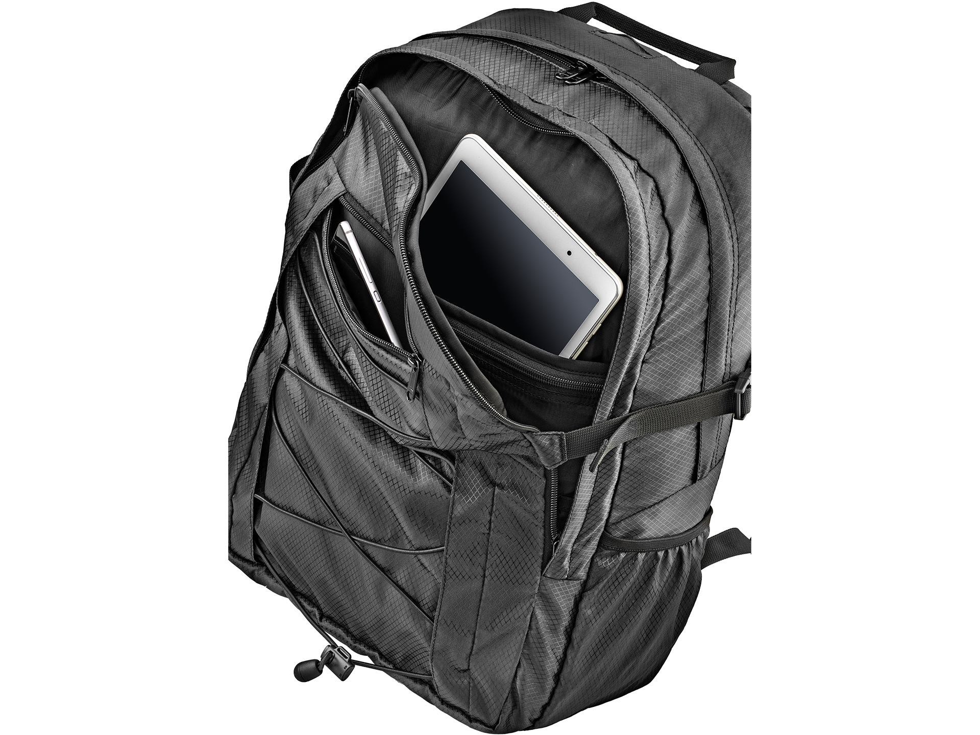 Zaino costruito per molteplici usi, adatto per recarsi al lavoro, a scuola ed affrontare attività outdoor. Dotato di due tasche principali molto capienti, una con alloggiamento per un portatile da 13”, un tablet o una sacca idrica ed una seconda con un’ulteriore tasca ed un organizer. Vi sono poi altre tre tasche, una portaoggetti frontale e due laterali in tessuto porta borraccia.